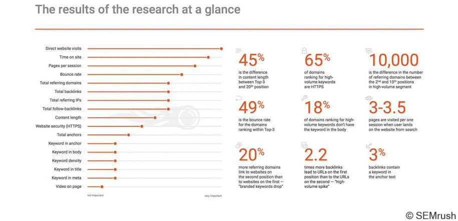 Auch in diesem Jahr geben wir unseren Lesern einen Ausblick über die Rankingfaktoren 2018. Das SEO Unternehmen SEMRush hat dazu eine Studie veröffentlicht, die die neusten Nutzersignale mit 600.000 Keywords als Datenbasis veröffentlicht haben.